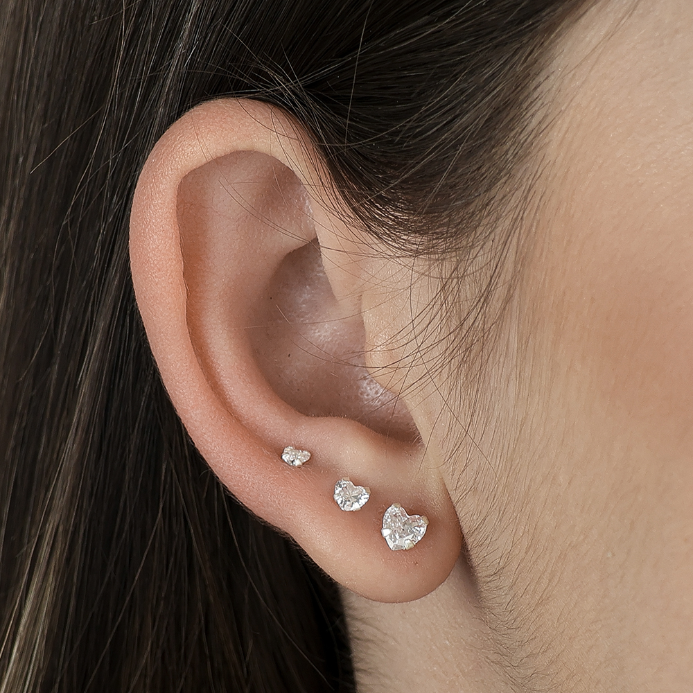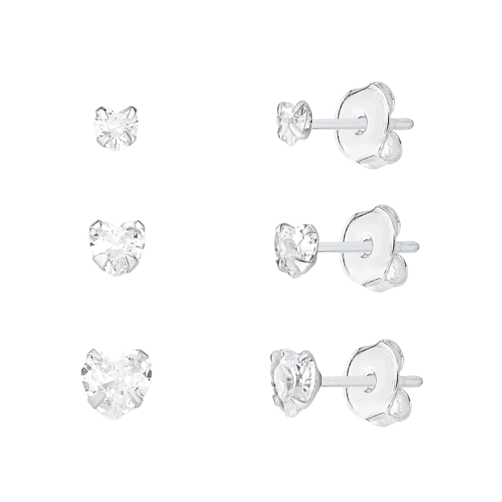Trio de Ponto de Luz de Coração em Prata 925